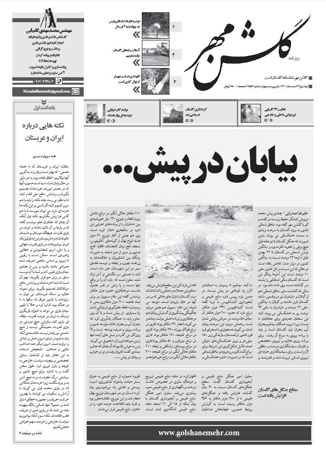 گلشن مهر شماره : 3097 / دوشنبه 24 آذر